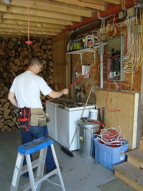 Mr. Gryce ran all the heating ductwork and did the electrical wiring himself.